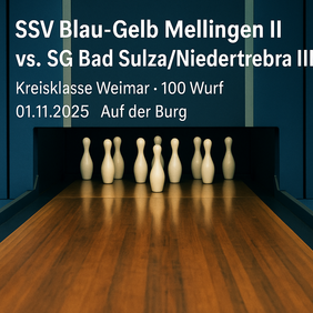 Starkes Ausrufezeichen der SG Bad Sulza/Niedertrebra III: Beim SSV Blau-Gelb Mellingen II setzten sich unsere Männer auf der Bahnanlage „Auf der Burg“ mit 1675:1553 Kegeln durch – die Tabellenpunkte gehen mit 2:0 an die SG.