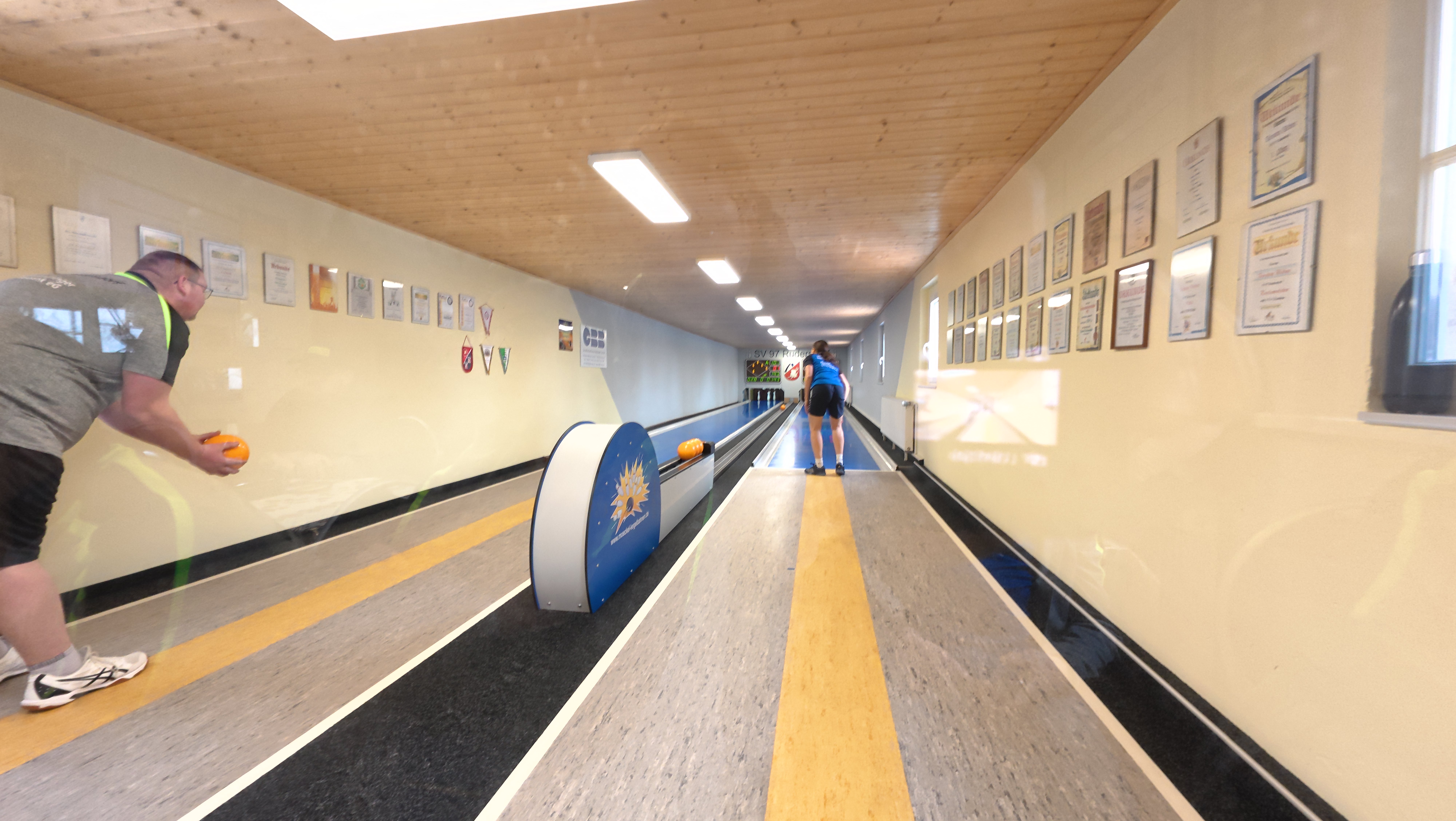 Die zweite Paarung bestritten Meister Mathias und Daniela Steinkopf. Meister Mathias fand nur schwer ins Spiel und kam am Ende auf 356 Holz. Daniela Steinkopf spielte konstant und erzielte 406 Holz, zudem setzte sie sich in die Abräumer mit 133 : 98 Punkten durch. Damit ging diese Begegnung an die Gastgeber. Vor allem auf Bahn 1 konnte Meister Mathias sein Können nicht abrufen und fand nicht richtig ins Spiel.